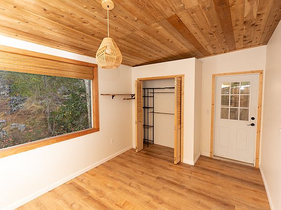 Log cabin is super cute built with fallen logs from the property. It’s approx. 144sf. (12x12) Additional composting toilet/outhouse built near log cabin, (2nd bathroom) could be used for guests, art or massage studio, etc. possibilities are endless.