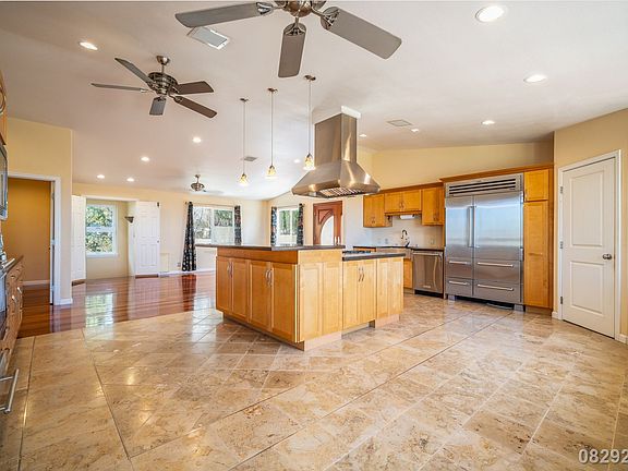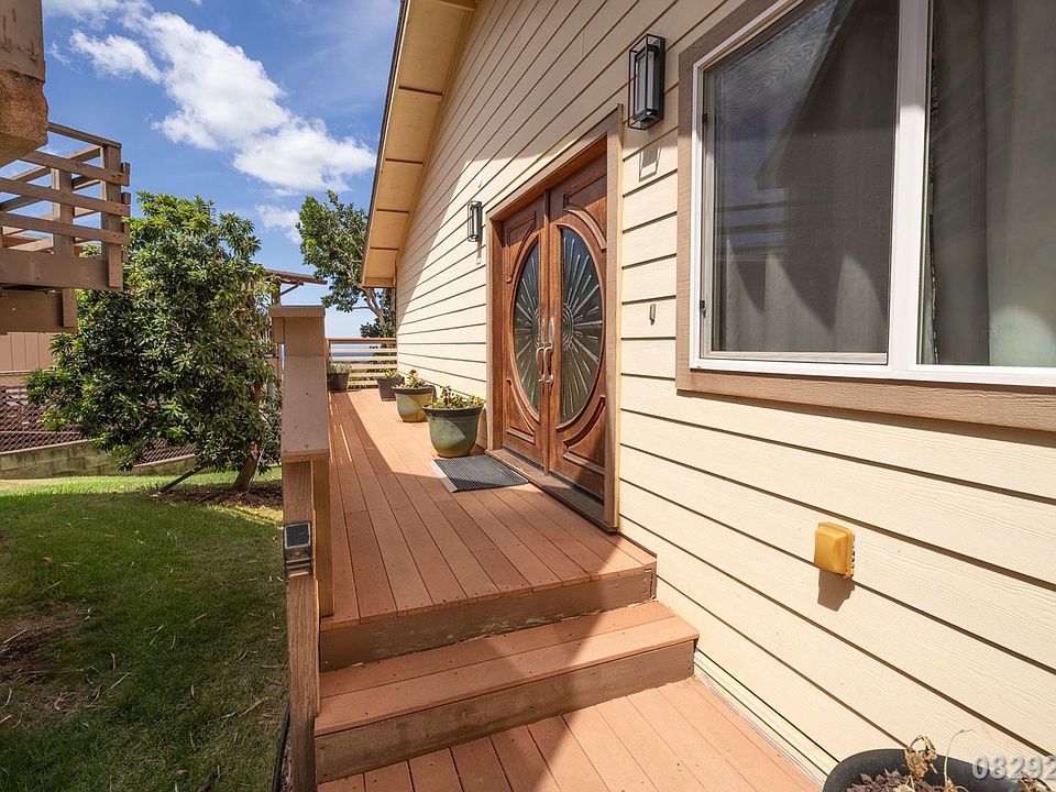 Unique must see home w/ true ocean views. Yard for pets w/ dwarf avocado, citrus, chico, banana, papaya & more. Large covered outdoor BBQ kitchen and separate laundry facilities downstairs. Lux decor w/top of the line Subzero fridge, freezer, Wolf gas stove top, oven, microwave and range hood, silestone counter, napolina limestone flooring, solid tigerwood flooring, travertine tiles, unique fossil limestone counter and granite counters. Large master bedroom with 2XL closets, and a soaking tub. Open your eyes from a relaxing night's sleep & see the Pacific ocean just beyond your toes. Utilize the sun for your energy needs w/ 65 PV panels, solar hot water and 2 Tesla batteries.
