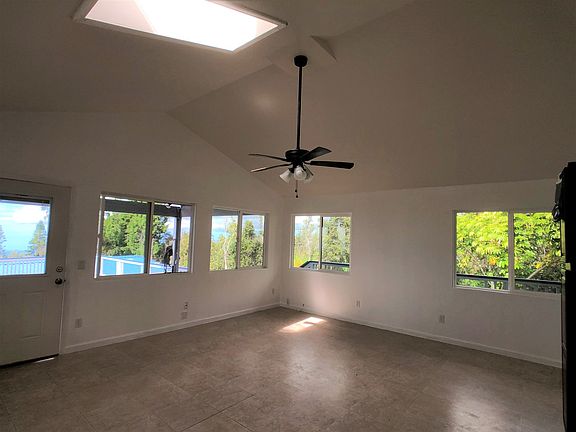 This is an absolute must see, one of a kind property built for a large family with great B&B potential or owner occupied short or long terms rental. This listing includes an enourmous sized home ( a "main home" with ADA access plus a an added 5 bedroom Ohana,) with over 3000 sqft plus wrap around porch, large decks and covered carport connecting the 2 buildings. With huge decks that boast amazing ocean, coastline and and sunset views this place was built for socializing! The property consists of 2 wooded acres creating plenty of privacy at a cooler elevation. The main home includes the kitchen with black appliances and quartz counter tops, 2 bedrooms and 1 bathroom and one of the decks. The Ohana has 5 bedrooms and an addtional bedroom could be easily created with just one seperating door. Many of the bedrooms have ceiling fans and their own exterior doors, connecting to the wrap around porch. There are 4 full bathrooms in the Ohana, and a large room that could include a kitchen are and dining, socializing room with a skylight. The Ohana master bedroom, connects to the enourmos deck that also sports a hot tub. A sauna and a gazebo are nestled into the lush tropical foliage. The 2 homes are connected by a 3 car carport. All windows and glass sliding door are double pane. The homes have one propane water heater each and there are 2 cess pools. The landscaping includes many fruit trees including limes, lemons, oranges, macnut trees, coffee, avocado, mango trees, lilikoi (passionfruit), banana trees as well as many shrubs and flowers. 36,000 gallon water catchment tank is filled from the enormous roof and includes a filtration system. The property has been well maintained and interior rooms, decking, railings are freshly painted.