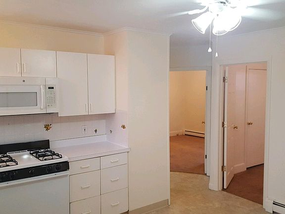 This apartment is the entire 1st Floor of a 2 family house. You will LOVE coming home to this beautiful apartment. As you park you car next to your private entrance into your apartment, you will enjoy your all new Four Season Porch. This porch has base board heat and has been remodeled with shiplap, new windows with mini blinds and wall to wall carpet. This room can be used as an additional room to your apartment. You will now open you slider and step into your living room which has new wall to wall carpet, a large window with mini blind and curtain rod and a ceiling fan. Slider has a blind for your immediate privacy. As you leave the living room, you will enter into your large bright kitchen. This includes a dishwasher, custom butch block spice rack, 4 burner gas stove with over the stove microwave and lots of cupboards. Kitchen also includes an 18' refrigerator with a frost free freezer. Windows have mini blinds and curtain rods along with a ceiling fan. Door off kitchen leads to side entrance and hallway for basement. Side entrance has a doorbell for this apartment. The living room and all 3 bedrooms have ceiling fans, mini blinds and curtain rods on all the windows. All the bedrooms, living room and enclosed Four Season Porch have new wall to wall carpets. All 3 bedrooms have closets. All 3 bedrooms and living room are set up for cable. The bathroom has all new tile along with a new large vanity and additional linen storage closet. Bathroom has tub and shower. Window in bathroom also includes mini blind and curtain rod. Apartment is "Certified Lead Safe". Apartment includes fire alarm system. Storage in basement with washer and dryer hook ups. Co-op laundry ($1.00 per load for washer and dryer) available in adjacent house. Private parking for 2 cars right next to entrance. Trash disposal dumpster for your convenience. Yard with covered grape arbor, table and chairs for your spring/summer picnics. Pets are welcome. Bus stops right up the street. Easy access to Route 95. Just minutes from coffee shop, convenience store, drug store, grocery store, gym, etc. Owner pays for water, sewer and trash dumpster. Tenant pays for gas and electric.