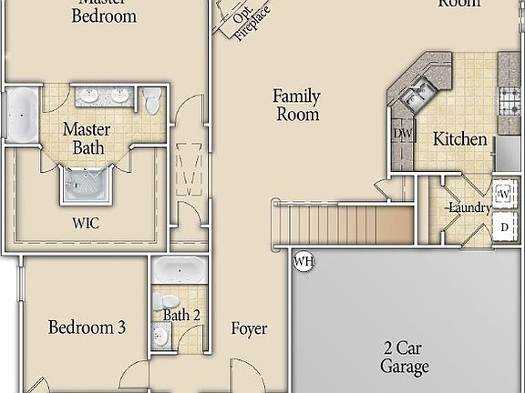 Corner fireplaceDining areaAustralian closetPrivate bathMaster suiteOpen kitchenExpansive great room