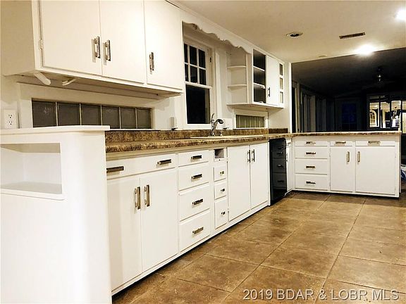 A rare opportunity awaits. Here is your chance to own a 3,600 sq ft (including lower) lake home in a great location in Lake Ozark with a great view on a double lot with a level driveway and a beautiful full stone masonry fireplace, all for under $200,000. Owner is also including a 2 year lease for an 18'x55' boat slip out your back door at Marine Max. With that you have all the marina amenities including swimming pool. If you don't want a boat slip, owner will give $15,000 toward construction repairs. The home is being sold "as is" but with a little paint, windows, roof and minor repairs the home will be your perfect lake home. You can search and search for homes but you won't find a better opportunity. This home also has historical background as it was built by an engineer who helped build Bagnell Dam. If you like to restore homes and have an appreciation of detail, this one fits. It even has a 10'x22' room under the garage with another bath that could be utilized.
