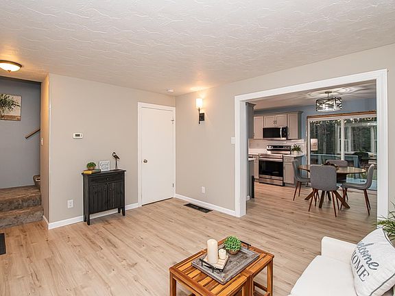 Turnkey 2-Bedroom, 1.5-Bath Townhouse! The first floor has been completely remodeled with a brand-new kitchen (2025) featuring modern cabinets, quartz countertops, and stainless steel appliances. The half bath has been fully renovated with a new vanity, toilet, lighting, and a stylish barn door. Enjoy new LVP flooring throughout the first floor and new carpet on the stairs and second level. The second floor offers a roomy primary bedroom with two closets, a nicely sized second bedroom, and a full bath. The finished bonus room in the basement provides great flexibility; perfect for a home office, gym, or playroom. Low $200 monthly HOA in a small, well-maintained condo community. Conveniently located near Route 125, shopping, dining, and local amenities. Join us for the Open House on Saturday, Nov 22nd from 12–1:30pm and Sunday, Nov 23rd from 11–1.