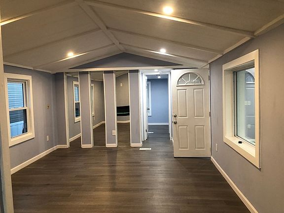WOW! A fabulous Home is unlike at the Lakeside Mobile Home Court! There's so much love about this modified single wide, w/ a 3rd bdrm & mudRm making to a double wide home. Property comes with a large private yard, huge MsBrm w/ MsBath Room & Double closets, cabinet packed kitchen w/ a beautiful, finished island. Open concept kitchen comes with modern StainLess steel Appliances, leading to the LvRm, which has a Colorful functioning Electrical FirePlace. 3 x full Bdrms and good sized mudRoom. This home offers 2 x full baths, & high ceilings w/ recessed lighting. A separate laundry Rm, & Plenty of parking. Flexibility on showing time. Come view and be impressed with the Quality of a fully-gutted, insulated and totally rehabbed property.