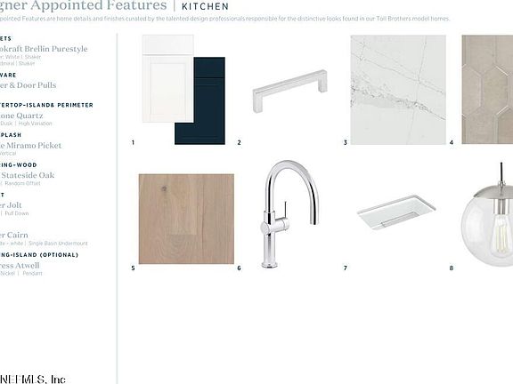 This stunning single-story coastal-style home will be ready for Summer 2026! Enjoy 10' ceilings, 8' doors, and wood floors throughout a soft, neutral interior. It offers an office with single-lite glass doors and the gourmet kitchen features dual tone cabinetry with a navy island, quartz countertops, a farmhouse sink, vertical hex backsplash, and built-in oven and microwave. The primary suite impresses with an expanded shower and dual shower heads, while a unique laundry-to-closet door adds everyday convenience. The oversized laundry includes a tub sink and ample storage potential. A tray ceiling defines the great room, where large windows frame views of the covered lanai with a gas line for an outdoor kitchen. Brushed nickel and polished chrome finishes add timeless sophistication. Perfectly situated inside our community's quiet gated entrance near the pond and featured mill, this home is loaded with thoughtful upgrades inside and out! Make your appointment to find out more today!