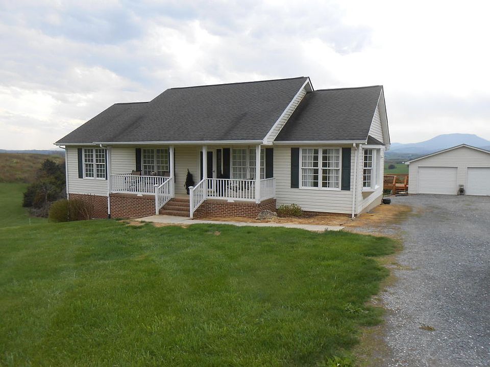 Enjoy the beauty of Rockbridge County from your front porch & deck. Rancher with finished walkout basement. Three bedrms, 2.5 baths, Kitchen opens to breakfast area. Formal dining rm & living rm. Decorative fireplace, & built in curio/bookshelves. Deck. Four car detached garage. Breathtaking views of House Mt. Vinyl siding. Rolling/sloping terrain. Minutes from downtown Lexington, VMI and W&L.