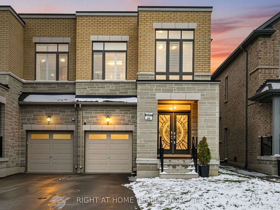 Welcome to this stunning 1950 sq ft upgraded home perfectly positioned near Brock Street & Taunton Road, in one of Whitby's most sought-after growth corridors. This modern residence showcases premium finishes throughout, including beautiful hardwood flooring across the main level, complemented by an elegant upgraded oak staircase.The gourmet kitchen is a chef's dream featuring timeless white shaker cabinets, stunning quartz countertops with classic subway tile backsplash and sleek stainless steel appliances. Smooth ceilings on the main level add to the contemporary appeal. Retreat to the luxurious master suite boasting 10ft coffered ceilings, walk-in closet plus additional closet, and a spa-inspired 4pc ensuite with frameless glass shower, freestanding soaker tub, and quartz countertops.The property offers exceptional convenience with a 2-car driveway and no sidewalk meaning no snow shovelling obligations! The upgraded side entrance provides excellent basement apartment potential for additional income. Located in Whitby's booming west end, you're minutes from Walmart Super Centre, Home Depot, countless restaurants, and the luxurious Therma Spa. Enjoy nearby Cullen Central Park with scenic hiking trails, sports fields, and pickleball courts. Quick access to Highway 412 connects you to the newly toll-free 407 and 401, while Whitby GO Station offers easy commuting.This rapidly developing area features top-rated schools including Donald Wilson Secondary (Fraser Institute rating: 8.0), with new schools under construction to serve the growing community. Whitby's population is projected to reach 240,000 by 2051, making this an excellent investment opportunity. Move-in ready with designer touches through out this home, won't last long!
