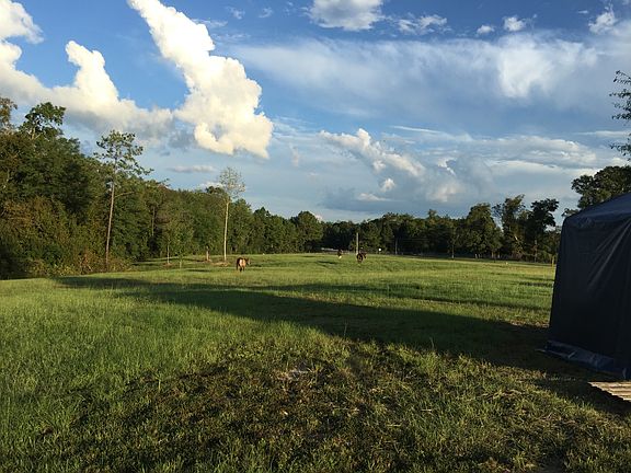 10 acres with lots of paved road frontage--partially wooded--about 6 acres in Bahiagrass. Tastefully decorated, huge tiled foyer, hardwood in dining and great room, granite counters, master with dbl sinks, tile, separate shower, garden tub. Open kitchen with walk-in pantry, lots of cabinets. Covered patio with view of back acreage with meandering creek in the woods. Recently planted--trees, pecan, chestnut, hazelnut. Property begins on the right at Gatewood Drive and runs 870 ft. Must see!