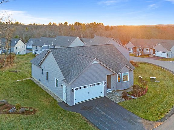 Enjoy the best of single-level living in this rare, stand-alone detached condominium at the sought-after Sawmill Ridge community in Atkinson, NH! This non-age-restricted home offers 2 bedrooms, 2.5 baths, and a 2-car garage, perfect for buyers seeking convenience and modern comfort. The first floor boasts an open-concept layout, featuring a sun-filled living and dining area with vaulted ceilings, hardwood flooring, and a cozy gas fireplace and sliders leading to a deck. The spacious eat-in kitchen with tile floors, maple cabinetry, granite and SS appliances is ideal for entertaining, or working from home with the built-in organization desk area. The primary suite offers hardwood floors, double closets, and an ensuite bath with double sinks and a walk-in shower. A second bedroom with hardwood floors is perfect for guests, an office, or additional family. Plus, enjoy the ease of first-floor laundry. The walk-out daylight lower level provides extra living space for hobbies, recreation, or even a home gym, along with a convenient 3/4 bath. Unfinished daylight space is also available for storage or future expansion. Additional features include central air and a low condo fee of $395/month. Built in 2018, this home is ready for its 2nd owner! Don’t miss the Open Houses on Saturday & Sunday, Dec. 21 & 22, from 11-1!