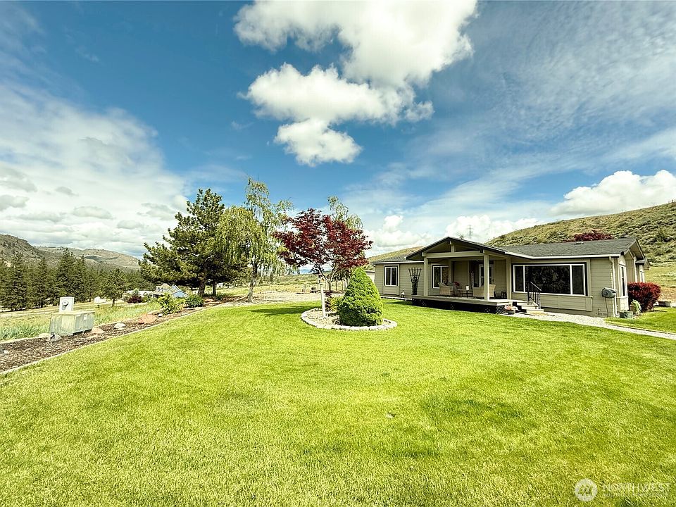 SPACIOUS & METICULOUS 3 bed/2 ba home SURROUNDED by outbuildings GALORE, on 10+ acres minutes from both Omak & Tonasket. Living rm w/wd stv w/new hearth; huge dining rm; separate family rm; upgraded kitchen w/island & all appliances; util rm with W/D; newer TRIPLE pane bronze-reflect windows; heat pump; comp roof; new Trex decking-2024, hot tub. QUALITY OUTBUILDINGS, including 850sf detached garage; 3,000sf shop/barn/kennels w/wtr, power, separate septic, loft, 12 ft roll-up door; several additional storage sheds, training kennels, wood/hay storage. Fenced garden & orchard; berries; private well; chicken coop; fire-pit; park-like yard & landscaping; partially fenced. Property adjacent to 1000s acres public ground. $475,000 H-3667/MLS2443131