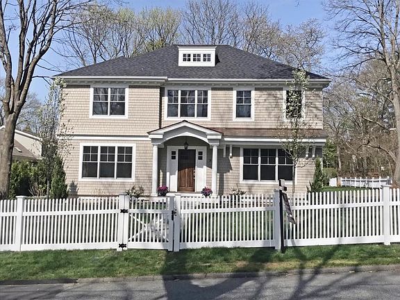 Dana Hall! A Jewel Box with all the bells and whistles within a 10 minute walk to Wellesley Center, commuter rail, shops, restaurants and Hunnewell School. Lovely center entrance colonial with ample sized living and dining rooms. Transitional details including coffered ceilings, gas fireplace, and custom millwork. The sunny kitchen/family room area features center island, Wolf and Subzero stainless steel appliances, extensive custom cabinetry, butlers pantry with wine fridge, eating area, gas fireplace, huge bank of windows and glass door to outside entertaining area. 4 bedrooms, 3 baths and laundry upstairs. Spectacular master suite with walk-in his/her closets and spa like carrera marble bath. Lovely stone walls grace professionally landscaped private yard. Across from Nehoiden Golf Course and close to entrance to the charming Brook Path. Don't miss this rare opportunity for quality new construction in walk-to-everything location! Ready for immediate occupancy.