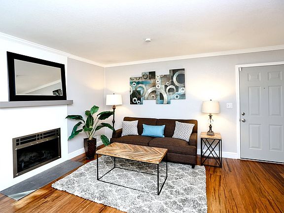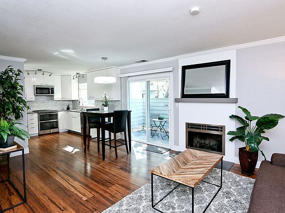 Updated turnkey end unit in excellent location! Downstairs unit with no steps. Open floor plan and spacious bedrooms with ample closet space. High quality engineered hardwood floors throughout. Living room features crown moulding recessed lighting, wood burning fireplace, dining area and slider to the front patio. Large backyard patio for a relaxing weekend morning or BBQ for friends & family. Upgraded kitchen with white cabinets, stone counter top with tile backsplash, double ovens, stainless steel appliances and walk in storage pantry/ laundry room. Master bedroom with barn doors, efficient closet organizer with updated bath. Nice sized guest room with built-in Murphy bed. Newer water heater. Well maintained complex with pool; one covered assigned carport and plenty of guest parking. Close to serene Hidden Lakes park and hiking trails. Enjoy easy access to all major highways and only miles from Concord BART. Highly rated Pleasant Hill school district!