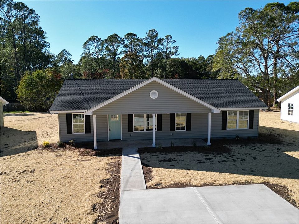 NEW CONSTRUCTION in Nahunta! Come see this well appointed 1,400 SF home. Near completion. architectural shingles, spray foam insulation in attic offers more comfort and saves money, double pane windows, low maintenance vinyl siding, luxury vinyl tile flooring, BEAUTIFUL maple cabinets, covered front porch, back patio, good location. No HOA, Paved Road, and high speed internet(fiber) available. Also Includes one year Builders Warranty.