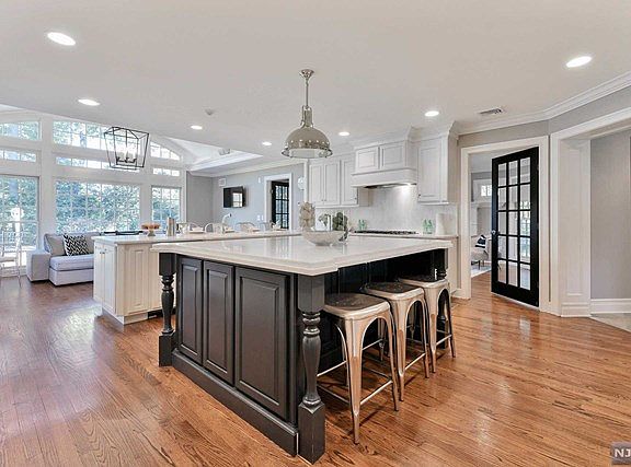 Located on premiere street on Demarest's East Hill. 4300 sq. feet of living space w/out basement or garage. Renovated & expanded w/many upgrades in 2015. Situated on 18,000 +/-sq.ft. of perfectly flat land. A genuine cedar shake exterior & lemonade porch exude timeless elegance. Sunlight floods pours through a wall of windows in this spectacular kitchen, featuring an oversized island with seating, complemented by additional marble counters w/more seating, double Miele D/W + a comfortable lounge area. Ideal for entertaining, adjacent to kitchen the den features a custom wet bar, fireplace & glass doors to blue stone patio. Additional family room w/fireplace make a perfect media room. The 2nd level boasts a master bedroom suite, magazine like master bath & large fitted walk in closet, a generous en-suite bedroom/bath, 2 additional large bedrooms w/jack & Jill Bath & LNDRY room. 1 year home warranty & 20KW Generator also included. Blue ribbon Public schools , 10 miles to NYC.