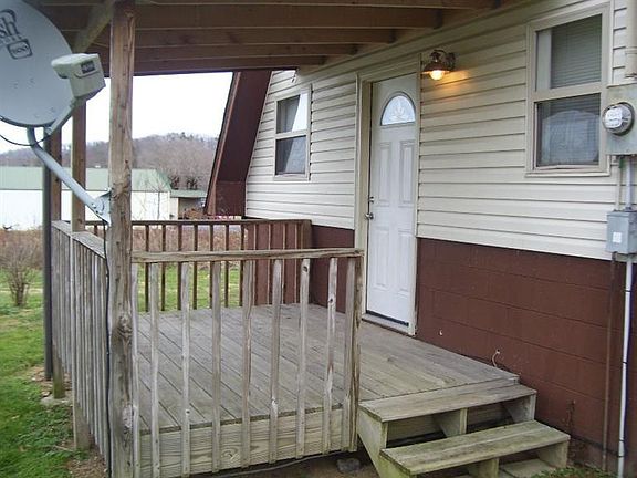 Rustic 2 Bedroom A Frame Home on Level Lot and Kentucky Utilities. Home is an Open Floor Plan with Living Room and Kitchen. Tile Flooring on Main Level. Appliances Are Included. Full Bath on Main Level and Laundry Area. Upstairs is 2 Bedrooms and Half Bath. Laminate Wood Flooring on Upper Level. Front and Back Porches. Storage Building is Included. Central Heat and Air.