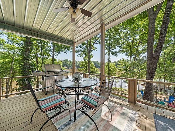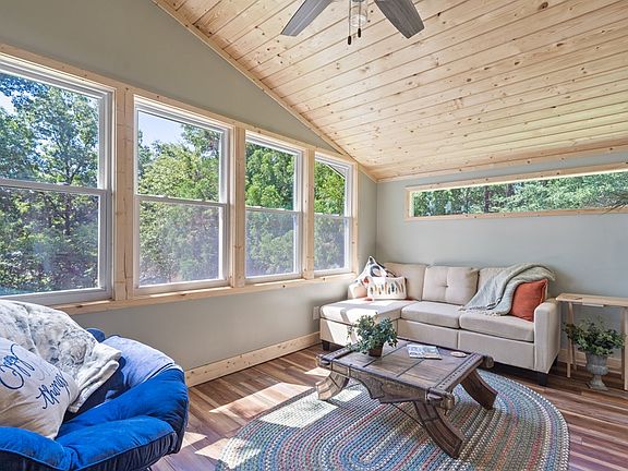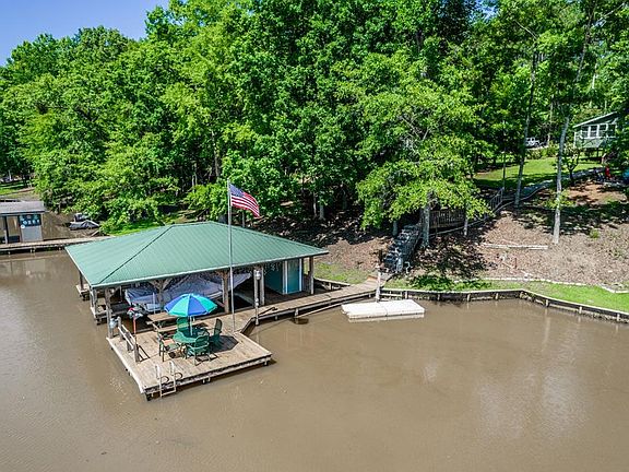 THE ULTIMATE LAKE COTTAGE! 180 degree lake views! Privacy! 2 bedroom 2 bath cutie with additional office/sleep space! Brand new master suite and bath - brand new lakeside sunporch - updated kitchen - newer roof - new 2nd water heater dedicated to master bath. Dedicated mini split master bedroom unit keeps temperatures perfect! INCREDIBLE double boat house and nice water depth. Two side by side separate lake lots included in this deal. Over 2.5 acres! Unbelievable detached garage is truly heads and shoulders above normal expectations - concrete bomb shelter/wine shelter/gun shelter. Additional pole barn carport. Wonderful lakeside firepit area. So much storage and so much room for cars boats, workshop.... This property has it all. HOA does not allow short term rentals. Don't hesitate on this lakeside retreat! Fee simple.