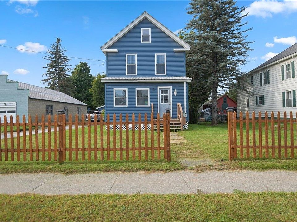 Welcome to this charming 3-bedroom, 2-bathroom home, ideally located on Grand Ave in the heart of Swanton. Recent upgrades include a fully enclosed backyard with brand-new fencing and a newly redone roof over the back deck, creating a private outdoor oasis perfect for relaxation and entertaining. Situated near schools and all local amenities, this home offers convenience and easy access to I-89 for seamless travel. Outdoor enthusiasts will love the proximity to the Missisquoi River, where summer fun awaits with swimming, paddleboarding, and fishing. The property features a detached 2-car garage, ideal for storage. Inside, the home welcomes you with a tiled mudroom, offering practical space for coats, shoes, or a cozy sitting area. The open-concept living room, dining area, and kitchen are bathed in natural light, providing a warm and inviting atmosphere. The kitchen boasts plenty of counter and cabinet space, making it perfect for family gatherings or casual meals. A separate laundry room is a convenient highlight on the main floor, alongside a full bathroom. Access to the unfinished basement and the covered back deck is also on this level, offering potential for additional storage. Upstairs, you’ll find three generously sized bedrooms, each filled with natural light, along with a 3/4 bathroom. Swanton is a friendly town with ample outdoor activities for everyone. Don’t miss out on this adorable home—it’s a must-see!