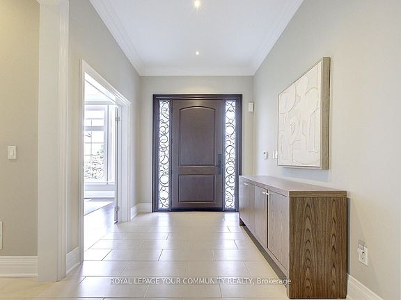 Stunning luxury 5+2 bed & 6-bath (4 full baths on 2nd flr) home on a premium 50ft x 120ft lot backing to conservation in E-N-C-L-A-V-E of Upper Thornhill Estates with large windows offering breathtaking private R-A-V-I-N-E views! Nestled on a quiet crescent surrounded by pond & trails - walk to nature trails/schools/parks! Steps to shops, GO train, golf courses & Hwys. Super location zoned for the best top rated schools including St. Therese of Lisieux Catholic H.S. Ranked #1 in Ontario! Offers extensive upgrades including 10 ft ceilings on main w/extended dr & window heights, 9 ft ceilings on 2nd flr w/extended window heights; inviting foyer w/custom 42 woodgrain fiberglass entry door w/wrought iron design; about 5,450+ sq ft luxury living space (3,760 Sf A.G.). Large Chef's dream kitchen with built-in top-of-the-line Thermador & Electrolux appl-s, upgraded cabinets, centre island w/quartz waterfall design, light valance; large main floor front office; smooth ceilings T-Out; NO carpet; hardwood flrs; Hunter Douglas silhouette covers T-Out main & maintenance-free vinyl shutters on 2nd; custom cabinetry in laundry rm&5th bedrm; LED pot lights; elegant lights & Chrystal chandeliers; exterior pot lights; 8 crown moulding & toto one-piece toilets throughout! Primary retreat w/spa like 6-pc ensuite, 3-sided gas fireplace, wellness den overlooking ravine & his&hers walk-in closets! Finished basement (2017) for family enjoyment or entertainment -features home theatre with pro 120 projector screen & integrated sound system, wet bar, open concept games area, large gym (or 7th bedrm) w/glass wall&glass dr, extra bedrm, custom built-in wall-to-wall bookcase & 3-pc bath! Huge mudroom w/garage access, closets, custom built-ins. Pro landscaped- Unilock Courtstone pavers in driveway & Unilock Flagston pavers in backyard, maintenance-free PVC fencing, rain bird wi-fi-enabled irrigation system, pro designed garden w/6 evergreen trees!Many extras! Come & see for yourself! See 3-D!