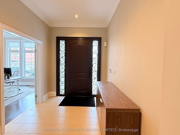 Stunning luxury home in Upper Thornhill Estates! This 5+2 bedroom, 6-bath residence sits on a 50ft120ft premium lot backing onto a serene conservation area, providing unobstructed private ravine views through expansive windows. Nestled on a quiet crescent surrounded by ponds and trails, it's steps to top schools, parks, shops, GO Transit, golf courses, and major highways. Zoned for St.ThereseofLisieuxCatholicH.S., ranked #1 in Ontario.Offering over 5,450sqft of total living space (3,760sqft above grade), the home features 10ft ceilings on the main level, extended doors and windows, and 9ft ceilings upstairs. The grand foyer opens with a custom 42" woodgrain fiberglass entry door accented by wrought iron.The gourmet kitchen showcases Thermador and Electrolux built-in appliances, custom cabinetry, a quartz waterfall island, and under-cabinet lighting. Additional features include a main floor office, hardwood flooring throughout, smooth ceilings, HunterDouglas Silhouette shades on the main level, and vinyl shutters upstairs. Premium finishes include elegant lighting, LED pot lights, crystal chandeliers, crown moulding, and one-piece Toto toilets.The primary suite offers a spa-inspired 6-piece ensuite, three-sided fireplace, a wellness den with ravine views, and his-and-hers walk-in closets. The professionally finished basement (2017) is perfect for entertaining with a home theatre featuring a 120" projector screen and sound system, wet bar, games area, gym or 7th bedroom enclosed by glass, a guest bedroom, built-in bookcase, and a 3-piece bath.A generous mudroom with garage access, custom built-ins, and large closets enhances everyday convenience. The professionally landscaped exterior includes a driveway with Unilock Courtstone pavers, a backyard with Flagstone pavers, a PVC fence, RainBird Wi-Fi irrigation, and a designer garden bordered by six mature evergreens.