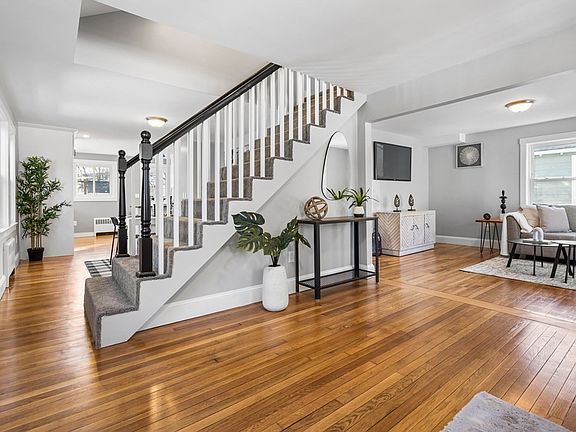 WOW!!! Come check out this beautifully renovated bungalow, boasting 1,600 square feet of living space on a dead end street. Walk in the front door and fall in love with the gleaming hardwood floors and open floor plan accented by tons of natural light and fresh paint. The first floor offers a flexible layout, with kitchen, living room, dining room and family room. plus a large main-level bedroom and updated full bath. The kitchen is open to the dining area, and features brand new white shaker cabinets, quartz counter tops and new stainless steel appliances - enjoy cooking out on the deck, with easy access from the kitchen. Upstairs you will find brand new wall to wall carpet, two generous bedrooms as well as a bonus office or playspace, and another beautiful full bath with a double vanity and large closet. The basement lends plenty of clean, bright storage space, a laundry area, plus an additional 3/4 bath. Updates-new 200 amp service/wiring,updated plumbing.mostly new windows
