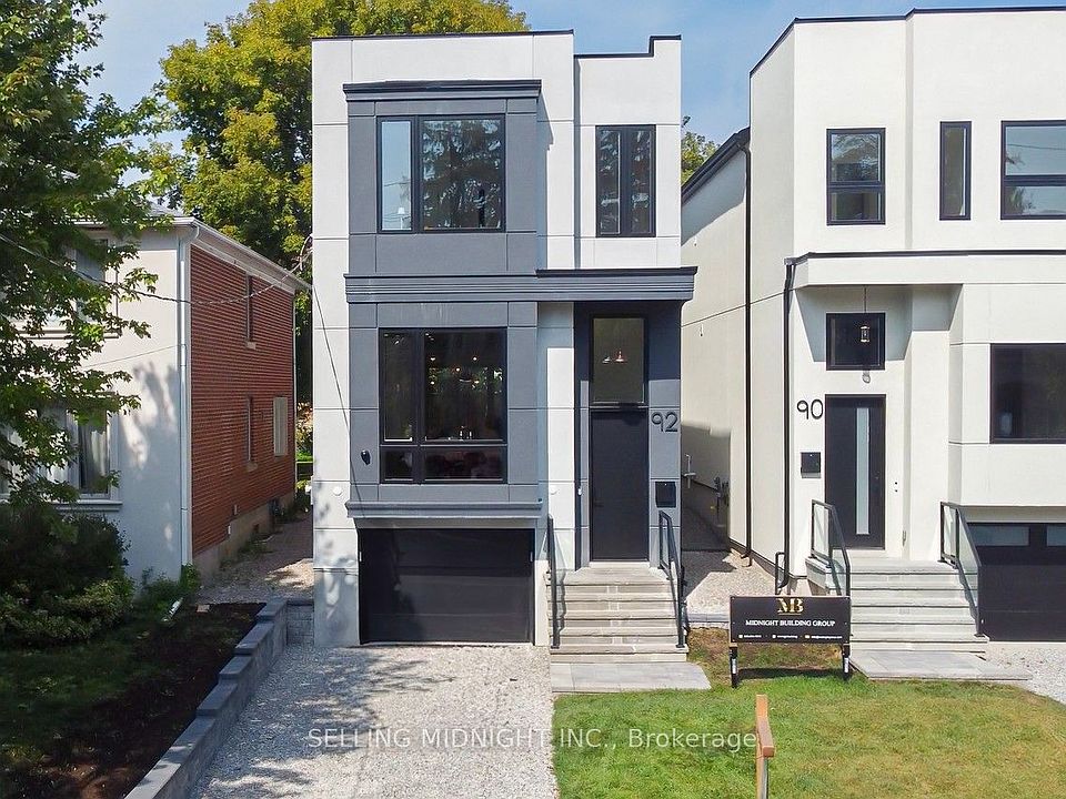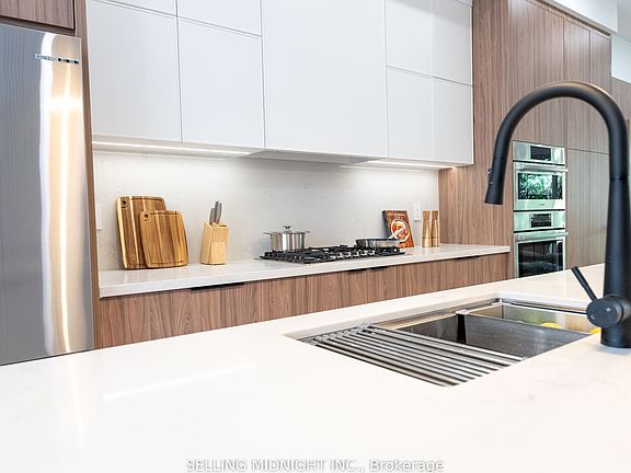 Brand New Build by Midnight - Move In Now! Be the first to call this new Midnight build home. Featuring 10-ft ceilings, oversized windows, and a gourmet kitchen with quartz waterfall countertops, panel-ready Bosch appliances, and full-height cabinetry. The main floor offers a wood-trimmed living room with a porcelain-slab gas fireplace, built-in shelving, and an open riser staircase with double stringer detail. Upstairs, the primary ensuite includes heated floors, custom vanities, and linear drains, with designer niches and upgraded fixtures throughout the secondary ensuites. Located on a quiet street minutes from Yonge & Sheppard, close to restaurants, cafés, Whole Foods, parks, and transit. Exterior upgrades include an 8-ft front door, flagstone porch with glass railing, and stucco detailing. Tarion Warranted (Taxes to be assessed).