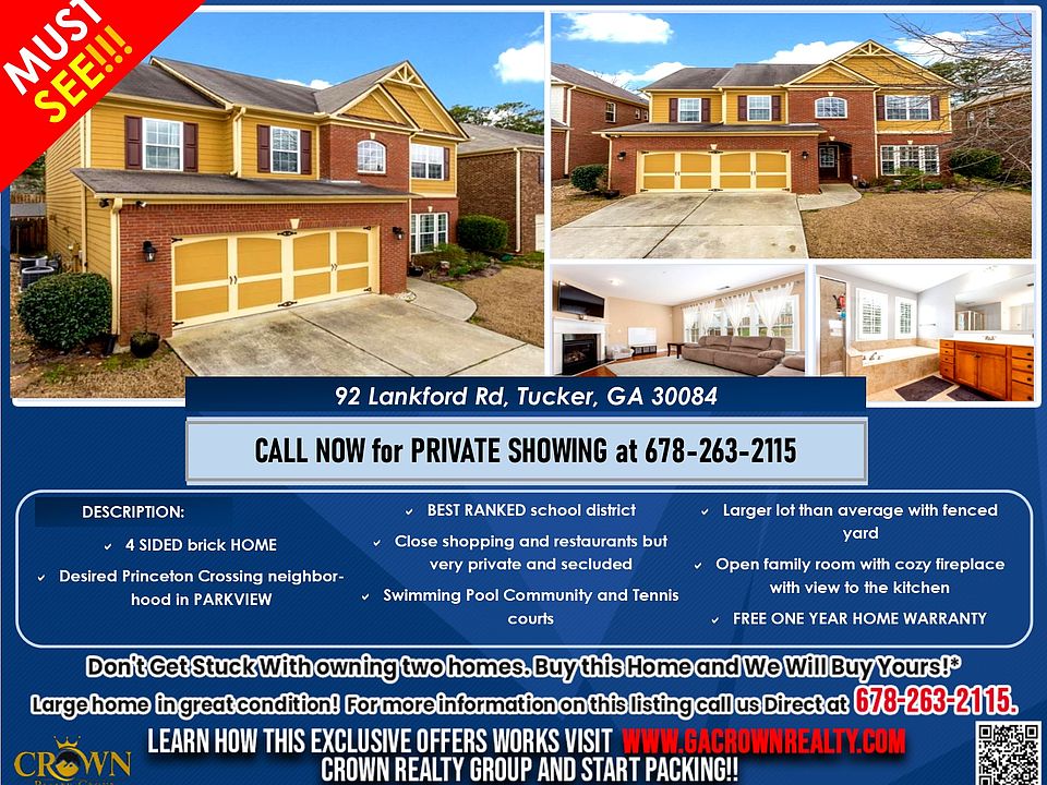 This 2562 square foot single family home has 4 bedrooms and 3.0 bathrooms. This home is located at 92 Lankford Rd, Tucker, GA 30084.