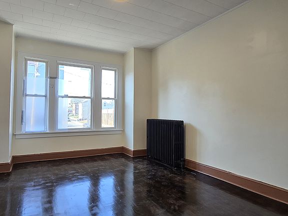 3 BR, 1 Bathroom, Very large Living room, Separate Dining room, also Kitchen with additional dining space, Absolutely large and very bright back porch, Common stair case will lead you to each unit. Street parking.