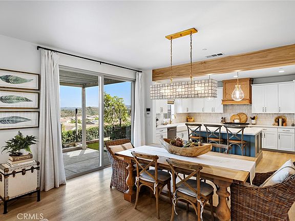 Welcome to the most coveted, corner lot home in the sought-after Esencia Citron community! Situated on the premier lot in the neighborhood, this stunning 4-bedroom, 3-bathroom residence boasts 270-degree panoramic views of the mountains, canyon, and Caspers Wilderness Park—a truly rare find. Thoughtfully designed for modern living, the home offers one full bedroom and bathroom downstairs, ideal for guests, multigenerational living, or a private home office. The heart of the home is a spacious chef’s kitchen featuring an oversized island, Quartz countertops, real maple cabinetry, and newer KitchenAid stainless steel appliances, all flowing seamlessly into the bright, open-concept living and dining areas. Meticulously upgraded throughout, the home includes luxury waterproof vinyl flooring, custom cabinetry in all bedrooms and closets, upgraded brushed nickel finishes in the bathrooms, and paid-off solar panels. Tech-forward features include a Control4 Smart Home System with security cameras, surround sound, lighting, and garage door all at the push of a button. Not to mention the low-voltage speaker wiring and ethernet in every room, along with an EV charging outlet and dedicated breaker in the garage. The garage also showcases black flake epoxy flooring with a custom Hex Light installation. Outside, enjoy low-voltage landscape lighting and panoramic views that set this property apart. This is a rare opportunity to own a truly turn-key home on a premier view lot in one of Rancho Mission Viejo’s most sought-after neighborhoods.