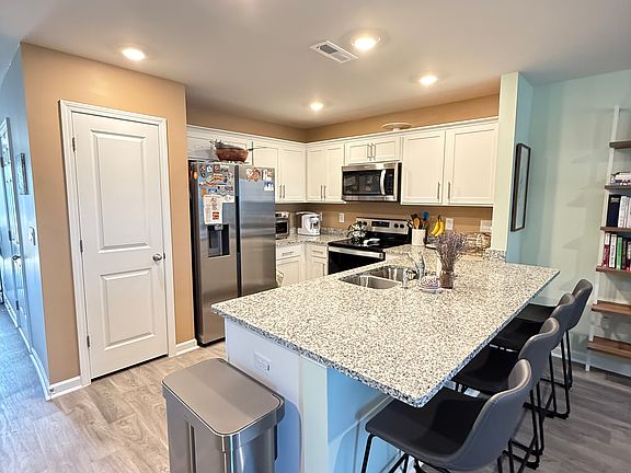 Gorgeous townhome features 3 bedrooms, 2.5 bathrooms, and a 1-car garage that offers plenty of room for comfortable living. As you enter the townhome, you will be greeted by an open and airy living area that flows seamlessly into a well-appointed kitchen breakfast bar for casual dining. The first floor also includes a convenient half bathroom for guests. Upstairs, you will find three bedrooms, each with their own closet space and plenty of natural light. The primary bedroom features an ensuite bathroom with a walk in shower, a double vanity, and a separate walk in closet. The other two bedrooms share a full bathroom with a shower/tub combination.
