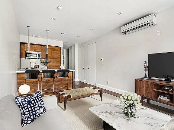 Newly constructed within an original ornate Beaux Arts facade, we bring a Park Facing One bedroom One bath residence . 92 Morningside's residences have been designed with a minimalist aesthetic, high-performance features, and the finest craftsmanship. No details have been overlooked. Premium, condo-like finishes include 7 wide-plank smoked oak flooring, flush-finished doorjambs, and unadorned oversized windows. Finish details, including custom-crafted base molding, polished Valli & Valli hardware, and custom closet organizers, speak to the level of attention given to every aspect of the interior. This apartment is furnished with a Bosch washer and dryer and equipped with thermostats for multi-zone heating and cooling to ensure perfect comfort. The European-designed kitchen features German-manufactured Alno walnut cabinetry, Liebherr and Bosch appliances, and