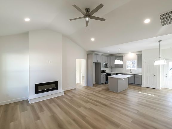 New Construction! Dream Home Alert! Stylish 3 Bedroom, 2 bath gem that blends timeless elegance with contemporary convenience. Perfectly crafted with attention to detail, the home offers a lifestyle of comfort and sophistication. Key features: Exterior: Eye catching stone accents and single car garage with ample attic storage. Interior Living: Enjoy cozy evenings by the fireplace in the open concept living area, complemented by luxurious engineered hardwood floors throughout. Chef's kitchen with white shaker cabinets, stunning quartz countertops, a farmhouse sink, and stainless steel appliances make this kitchen functional and beautiful. Primary Suite: A spacious retreat featuring a tiled bath with a soaking tub, separate tiled shower and double vanity for ultimate comfort. Energy Efficiency: Total electric home with spray foam insulation in the attic and garage, plus an on-demand water heater for maximum energy savings. Additional highlights: Large laundry room with easy access to the garage. Rear Deck - perfect for outdoor entertaining or relaxing evenings. This property combines modern energy-efficient features with stunning design, creating a space you'll love to call home. No HOA fees. 100% financing with preferred lender. Professional photos coming soon.