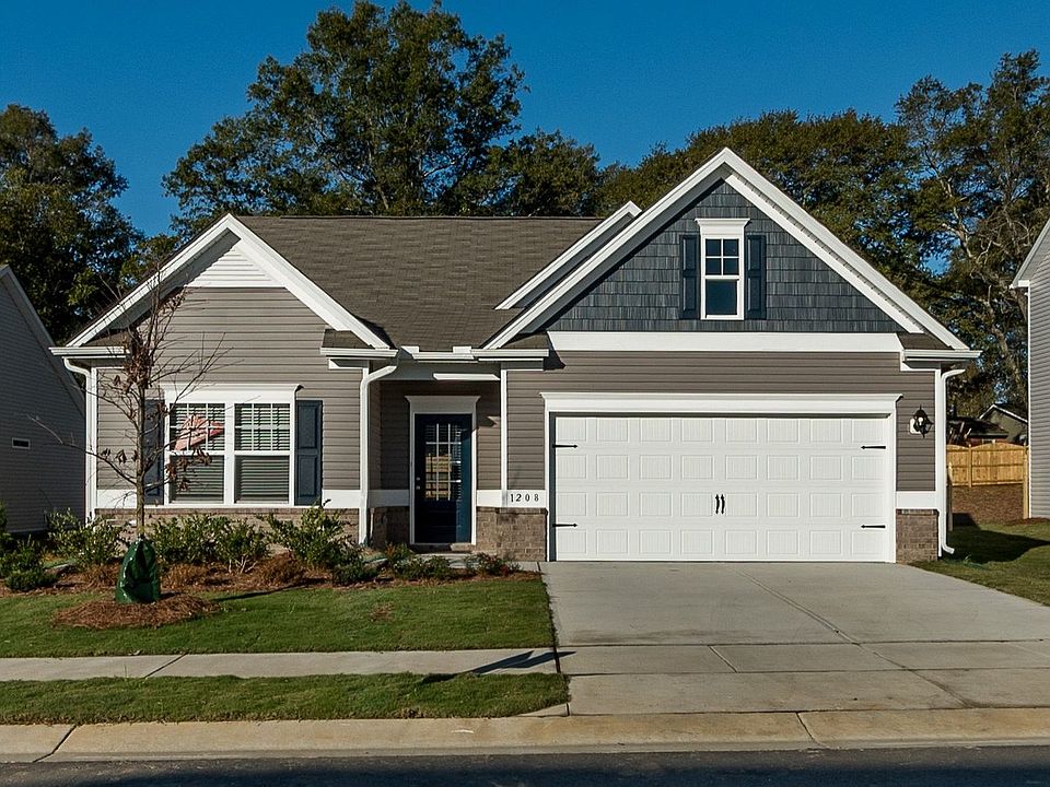 The Lanier plan offers true ranch style living with a second floor unfinished storage space.. 3 bedrooms are located on the main level with 2 full baths, an open floor plan with spacious kitchen and covered back patio. Upgraded cabinetry, fireplace, enhanced vinyl plank flooring, and upgraded lighting package help to enhance the beauty of this home. Some photos & videos shown may be of similar homes built and are provided to represent the actual listed home.