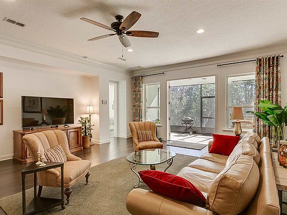 Pack your bags for this immaculate move - in ready Tuscan style home with many upgrades! This beautiful home is situated on a 65' lot with unique preserve view. Ample storage throughout the home, including a large pantry in the kitchen and a walk - in closet in the master suite. Relax in the warm and inviting great room or enjoy your morning coffee or evening cocktails on the screened lanai. Don't forget the 3 car garage to park your antique collectible car. This home truly has it all! Upgrades include: tile roof, solar panels to reduce electric bills, front door with custom hurricane glass insert, 3 car garage with custom Monkey Bar garage cabinets, wood floors, double crown molding, water softener, reverse osmosis filter , 2018 Ceiling fans, 2019 Plantation shutters, laundry sink, double glass with blinds in french doors to lanai, Ring security system, screened lanai, home pressure washed, sealed and new caulk to exterior windows with 2 coats premium exterior paint rolled and brushed on, gutters and downspouts to front and rear of home, touchpad locks from garage into house and french doors to lanai, re -landscaped front yard, and inside of home painted with premium interior paint. Kitchen includes : stainless steel appliances, granite counter tops and glass subway tile back splash.