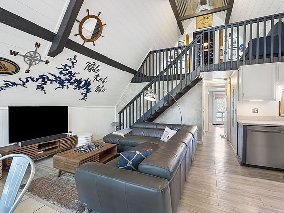The lake charm of this 5 Bed/3 Bath A-Frame Cabin with a TRL winter lake view at Black Oak Mountain Resort is sure to impress! Check out all the upgrades recently completed in this charming lake home to give it a complete cosmetic overhaul. In addition to the make-over a new roof, doors, HVAC (dual units), & stainless steel appliances (including a washer and dryer) were updated in 2021 as well. Pool table & kitchenette in the basement make it perfect for entertaining family and friends. Lower level has its own electric meter, water heater and HVAC to be separately controlled; would make a great in-laws quarters or separate living space for multiple families. This lake house comes beautifully decorated & fully furnished, all you need is your kitchen, bath and personal items and you're ready to go! There is even a new 7x7 storage shed for all your extras and lake toys. Must be a cash deal or 1031 exchange - ask agent for details. Add'l adjoining lots to East and a South of home available for purchase from third party for add'l $$.