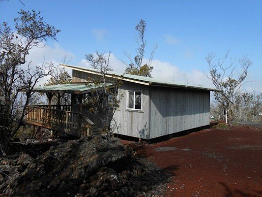 Just dropped out of Escrow!! Really cute cabin - the hard work has been done, and just needs 'finishing'. At approximately 3.700' elevation. Open, Light and Bright. Kitchen with tile Counter tops, BIG windows (gated) red cinder driveway and a lovely Ocean View from the house and deck through the ancient Ohia trees. Home is well-built
