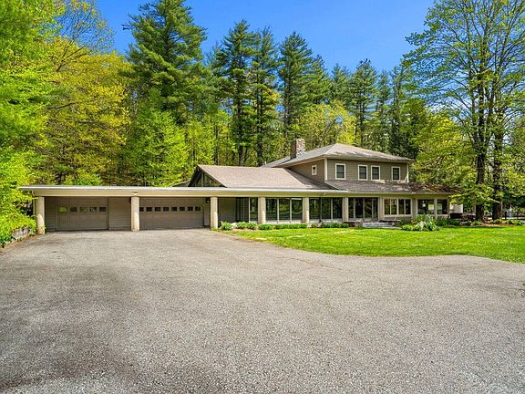 Check out the video of this property! This unique, mid-century modern style masterpiece is over 6,000 sq. ft. and sits on over 9 lush acres with stunning views of The Piscataqua River. Enjoy peace and quiet in you own private, park like setting. The custom gourmet kitchen features leathered granite, high end SS appliances, a 14 ft. island and breakfast nook with coffee bar surrounded by walls of windows so you can watch the wildlife as you sip your morning coffee. In the center of the enormous family room sits a granite, floor to ceiling wood burning fireplace. The family room also features beautiful woodwork, custom built-ins and vaulted ceilings. Entertain family and friends with a game of pool in the living room or by playing piano. You will love working from home in the spacious office which has a wall of windows and custom granite throughout. There are 2 large en-suite bedrooms on the main level with lots of closet space. The primary bedroom suite is on the 2nd level and has a cozy gas fireplace, wet bar and spa like bathroom. There is a 4th en-suite bedroom on the 2nd level with a walk-in closet and private 3/4 bath. The basement features an amazing wine cellar with water feature, an indoor pool, sauna and bonus room. Outside enjoy the summer in the gunite pool with fountain or relax under the stars in your hot tub. The garage can fit 8+ cars and offers plenty of storage for all your toys. This house is such a unique gem!