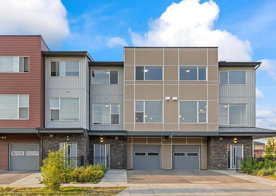 3-Storey Townhome | Single Attached Garage + Full Driveway | 1,487 SqFt | 2 Bedrooms | 2.5 Bathrooms | Modern Finishes | Quartz Countertops | Stainless Steel Kitchen Appliances | Raised Breakfast Bar | Open Floor Plan | High Ceilings | Incredible Natural Light | Upper Level Laundry | Spacious Bedrooms | Wide Plank Flooring | Incredible Location | Close to All Amenities | Near Saddlestone Pond & Walking Path | Minutes to CBE Hugh A Bennet School | Great Transit Access. Welcome to this stunning end unit 3-storey townhome with an open floor plan complimenting it's large living space. Welcome home to this stunning 3-storey townhome in an incredible location and gorgeous open floor plan with expansive living space. The front door opens to the foyer with closet storage and your interior access to your single attached garage. Head upstairs to the 2nd level where you'll find a bright and open concept kitchen, living and dining rooms. The kitchen is outfitted with sparkling quartz countertops, ample cabinet storage, stainless steel appliances and a raised breakfast bar for barstool seating. The vastness of this level is complimented by the high ceilings and the large windows. The dining area is paired with a nook that can be a dedicated dining space or maybe a hutch! The living room is a generous size and will easily fit your family's comfortable furniture. This level is complete with a 2pc bath. The uppermost level holds 2 bedrooms, 2 bathrooms and laundry. The primary bedroom is paired with a walk-in closet and private 3pc ensuite bath with a walk-in shower. The 2nd bedroom is a great size! The 4pc bath has a tub/shower combo and single vanity with storage below. The upper level stacked laundry is tucked into a hall closet to not take any of your living space. The laundry closet has wire shelving for linen storage. The single attached garage holds the utility room and storage for your seasonal items! The full driveway is a great bonus for your second vehicle. This home is located to perfection! Steps from your home is the saddlelake pond with a walking path. The CBE Hugh A Bennet School is nearby and there's great transit access too. Hurry and book a showing at this incredible home today!