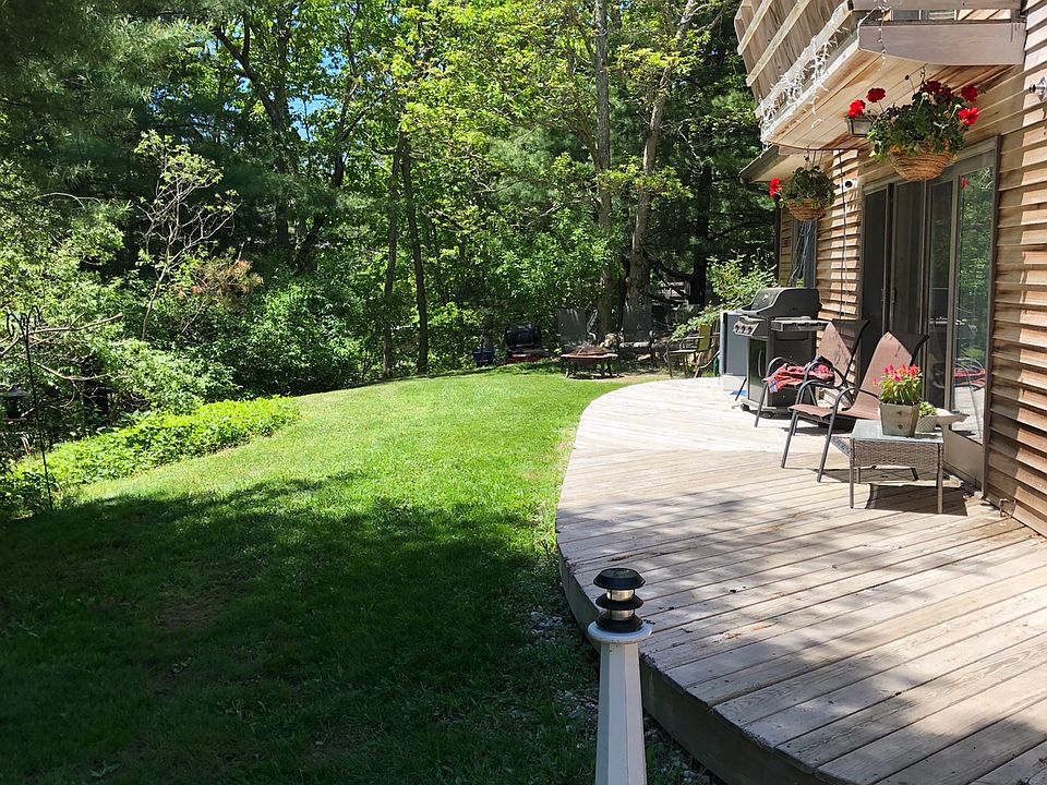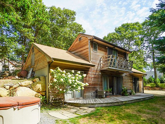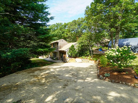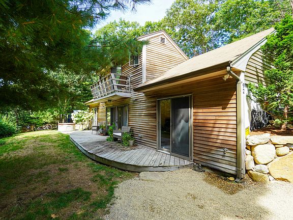 LOCATION, LOCATION, LOCATION! This is an energy efficient home designed to help save the homeowner thousands of dollars over the years with a Passive Solar design, built into a hill with a South facing Front side, it has sliding glass doors in each room allowing bright sun all day. This property is just under a half-acre situated in a mostly year-round neighborhood very close to everything you need. Tisbury School is a 5-7-minute walk and Main Street hosting all your shopping needs as well as several restaurants is about a 15-minute walk. The Steamship Authority is about a 15-20-minute walk, Lake Tashmoo is a short 10-minute walk on a path through the woods. According to the homeowners the property abuts about 12 acres of forestry land, providing a lot of privacy in the backyard. This home has had several updates in the last 3 years, including a 30x35 Goshen stone patio flanked by a beautiful stone wall including Volt landscape lighting, designed specifically for entertaining. Current homeowners host movie nights with the big outdoor screen and stadium like seating.