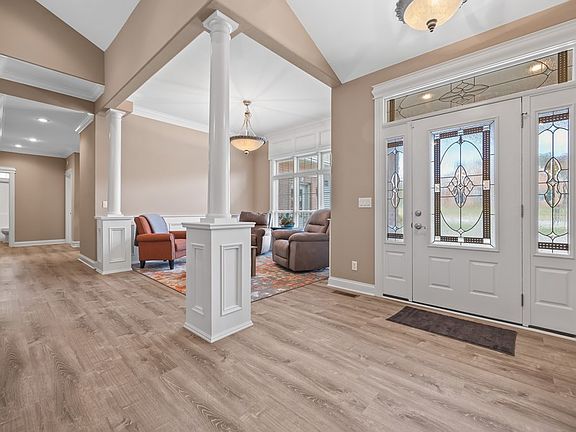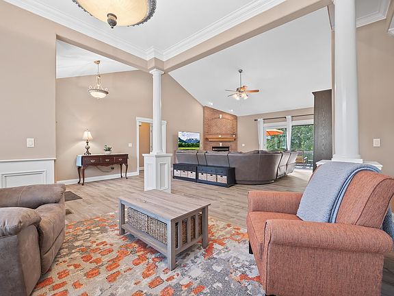 Greeted by a welcoming foyer, functional open concept living, gorgeous cathedral ceilings, & exquisite design & details, this home offers peace of mind & functionality. Three bedrooms are conveniently located on the main level, including the primary suite featuring vaulted ceilings, his/her closets, a spa-like ensuite w/ jetted tub, tiled shower, & dual vanities! Gather around the gas fireplace or in the entertaining kitchen, highlighting granite countertops, custom cabinetry, & s/s appliances. The upper level bedroom can double as an office, w/ a full bath & oversized closet. Additional features include new flooring, HVAC unit, water heater, deck expansion, foam insulated crawl space, underground utilities, & lower level exterior storage! Enjoy the amenities the gated Homestead Place community has to offer - use of community clubhouse, pool, pickleball & tennis courts. 13 month home warranty for peace of mind.