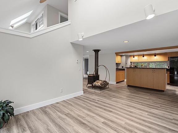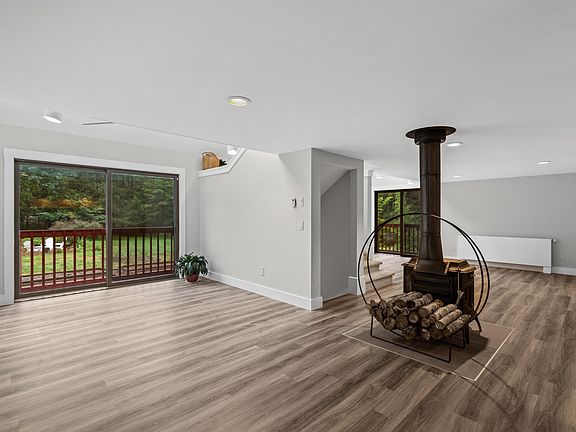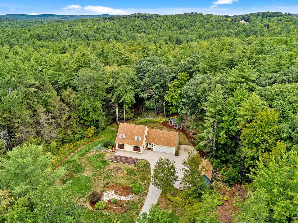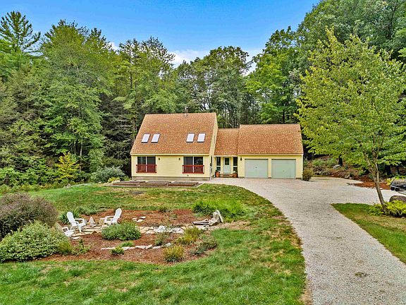 Find your happy place in this adorable New Boston sun-filled south facing RENOVATED contemporary cape with a modern vibe set on a lovely 5+ ac lot on a quiet country cul-de-sac. Quality & attention to detail abounds in this 3-bedroom open concept home with new flooring, 2 entirely new baths, one with a soaking tub, freshly painted interior & a state of the art European style heating system. Step in from the garage to a closeted mudroom and straight into the kitchen with the groceries. The kitchen offers plenty of cabinets & an island with breakfast bar that are topped with a lovely black quartz countertop. For the cook in the family there is 5-burner gas cooktop & large wall oven. The kitchen opens up to a 36x12 deck which overlooks a very private & serene back yard. A centrally located wood stove on the 1st flr is a welcome supplement during the winter months. There is a spacious skylighted office above the garage or use the space for a hobby room. With a huge 760 sf open concept newly finished space in the walkout lower level, the sky is the limit here. Perennial borders, raised beds, peach trees & 20 blueberry bushes, await the new owner, & the post & beam shed built with timber from the property will comfortably house all your equipment. New Boston has retained its country roots & with this home being just mins away from the town center with its country store, restaurants & elementary school, this could be your home sweet home! OFFER DEADLINE: 4PM SUNDAY, SEPT 11