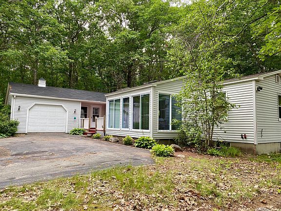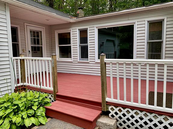 Affordable one floor living! Downsizing or looking for your first home? This 2-bedroom 1.5-bathroom home with 1-car garage sits on 1.43-acres. The kitchen is open to the sunlit dining room and living room. Two bedrooms, one with a half-bathroom. Updated common bathroom with laundry. The mudroom entrance leads to the 1-car garage. The back four-season room overlooks the private backyard. Relax or entertain on the wrap around rear deck. The full basement offers plenty of room for storage. This home is equipped with worry-free public water.