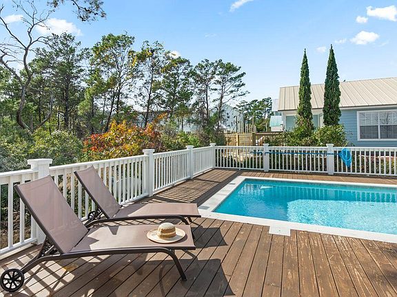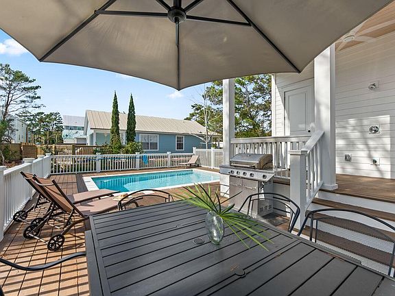 This 30A home offers impressive rental income and low cost of ownership with NO HOA, a private pool, parking for up to 6 cars, 4 bedrooms plus a bunk space, and steps local restaurants and THE BEACH! You'll be impressed with the quality of construction and ideal layout which offers one bedroom and bath on the first floor, primary suite on the second level along with 2 rooms that share a bathroom. The bunk space creates the perfect space for rental income, however, if looking for a primary home it could offer a second living space. CALL AN AGENT TO SCHEDULE YOUR SHOWING TODAY!!! kitchen where culinary enthusiasts will revel in the brushed stainless steel appliances, custom white cabinets and abundant storage. Three chrome light fixtures highlight the generously sized island, offering further space for dining and socializing. The main floor also includes a bedroom with an ensuite bath, a powder room and a laundry, adding to the practical layout of the home. Three well-proportioned bedrooms occupy the second floor along with a flex space currently used as a bunk room to sleep four. The king-sized master suite creates a sanctuary of calm with its own screened porch overlooking the heated private pool and mature vegetation. The luxurious master bathroom boasts a contemporary soaker tub, double vanity and walk-in shower. The outdoor area continues to impress, from multiple porches to the spacious sunny pool deck which is perfect for poolside barbecues. The lengthy private driveway offers ample parking space for up to six vehicles. Shopping, dining and galleries are just two minutes away at Gulf Place along with an outdoor amphitheater that regularly hosts concerts, art shows and events. Ocean Reef currently manages the home- to see future bookings: https://www.oceanreefresorts.com/vacation-rentals/seas-the-day/