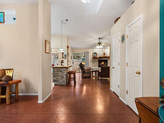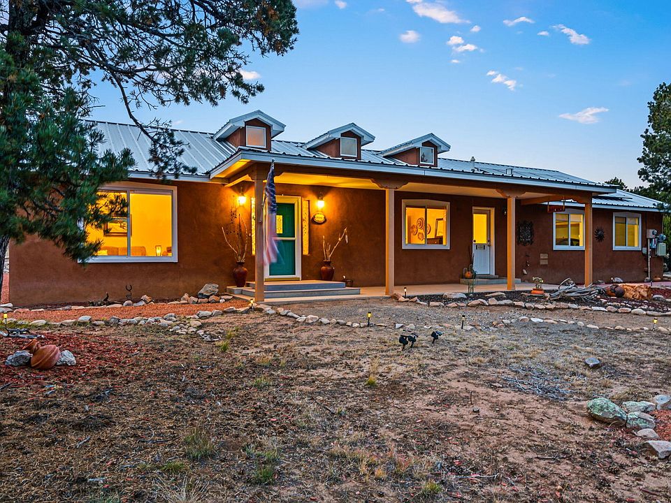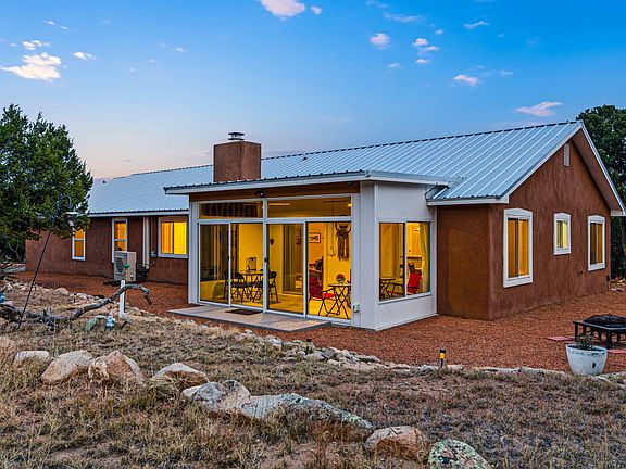 Nestled in the private, gated community of Tierra Encantada, this 4-acre property offers tranquil and refined living. The single-story home features 2157 sq ft with 3 bedrooms, 2 baths, two living areas and a sunroom. The family room includes a gas assisted wood burning fireplace with stone surround and a custom wood mantel with turquoise inlay. The remodeled kitchen has quartz countertops, a custom island with bar seating and a pantry cabinet. The owner's suite offers a sitting area, his-and-hers closets, dual sinks and a roll-in shower. Concrete floors, radiant heat, mini splits, city water, septic, owned solar and a 2-car plus RV garage add comfort and convenience. Enjoy San Pedro Mountain views in this tranquil, wildlife-rich setting. See MORE for all updates & improvements.
