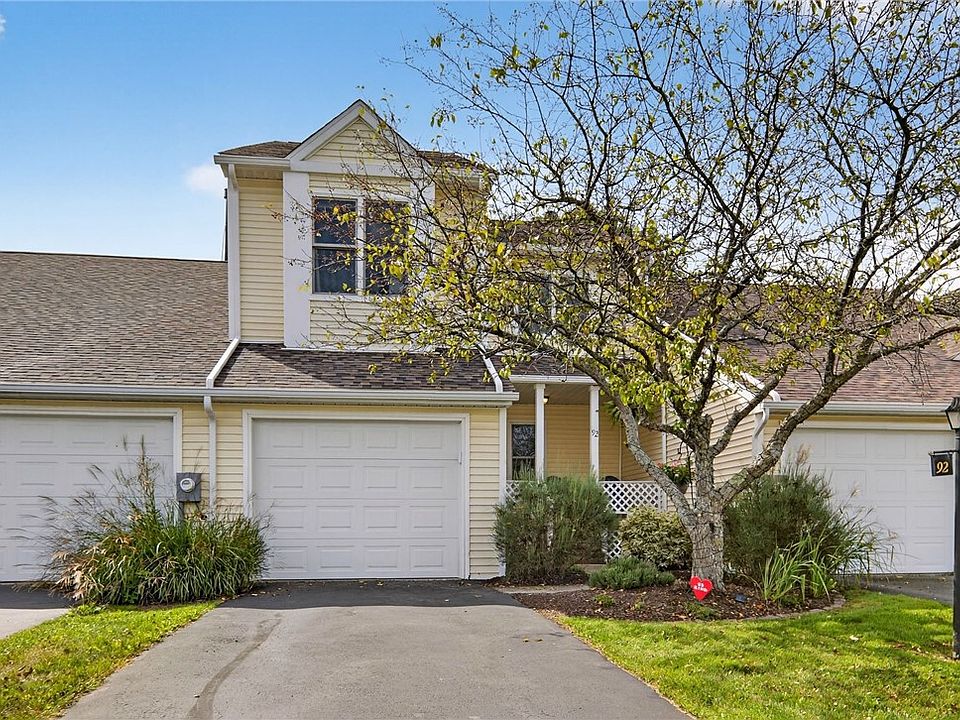 Discover this low-maintenance, move-in ready 3-bedroom, 1.5-bath townhouse in the highly sought-after Deer Run community! Ideally situated just minutes from the Ithaca Commons, Ithaca College, shopping, and scenic walking trails, this property offers the perfect blend of convenience and comfort. Step inside to find an inviting open floor plan featuring an updated kitchen with stainless steel appliances, granite countertops, and a breakfast bar that flows into a bright dining area with sliding doors leading to a brand new deck—perfect for outdoor relaxation. The spacious living room features vaulted ceilings, beautiful hardwood floors, and a charming wood-burning fireplace, creating an inviting atmosphere for relaxation and entertaining. Upstairs, you'll find three well-appointed bedrooms, including a primary suite with cathedral ceilings, a walk-in closet, and a private entrance to the full bathroom. A charming landing overlooks the living room below, adding to the home's appeal. Additional features include an attached one-car garage and a generous full basement, ideal for storage or additional recreation space. The HOA fee of $418 per month covers exterior maintenance (roof, siding, etc.) and landscaping, ensuring a worry-free lifestyle. Buy with confidence—ask your agent for the recent home inspection report.