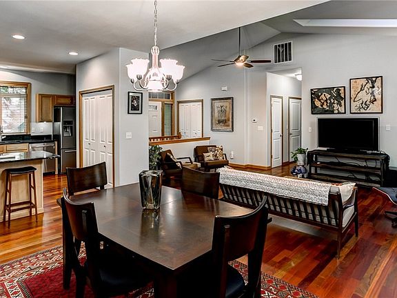 Stunning, meticulously maintained home on a quiet street. Open spaces, natural light & upgrades! Vaulted ceils, lrg windows & skylights make this lovely home feel like a tree house. Cherry hardwoods & finishes, new paint, new granite, list of upgrades goes on! Main floor master suite; lower level hosts lrg living rm, 2 bds & full bath. Decks off both levels, lower is covered for entertaining! 2 Car garage w/new storage & level driveway. Fully fenced dog run in back yard. Short walk to the lake!