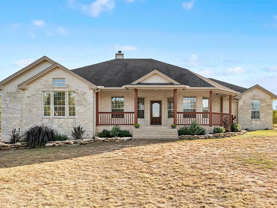 Welcome to your Texas Hill Country Ranchette located in Barton Creek Ranch community. Situated on 2.72 acres with two separate gated entrances, this one-story home offers privacy and functionality with 2,246 square feet of well-designed living space. Covered front and back porches provide a perfect view for Texas sunsets. This home has 3 bedrooms and 2 full baths, a separate office, and a formal dining room. The open kitchen connects to the living area highlighted by a stone fireplace and abundant natural light. The primary suite is generously sized, and the secondary bedrooms offer ample space. A breakfast nook, separate laundry room, and attached three-car garage complete the layout. Finishes include tile and carpet flooring with neutral paint colors throughout. Updates include a 2019 Trane HVAC system, thermostatically controlled exhaust fan in the garage, water softener, and a new composition shingle roof installed in October 2025. A 2,700-square-foot metal outbuilding expands the property’s versatility. The 60’x45’ climate-controlled structure features 100% spray foam insulation, 3/4” plywood walls, dual 3-ton HVAC mini-splits, and a dedicated 200-amp service with multiple 240V and 120V outlets. The 900-square-foot loft offers additional vertical storage, while the 13-foot covered parking area and commercial LED lighting enhance functionality. This structure is ideal for automotive, woodworking, a studio, equipment, RV parking, or storage. The property also includes a 30,000-gallon corrugated steel rainwater collection tank, capable of capturing approximately 2,500 gallons per inch of rainfall, along with a private well, storage shed, and Spectrum high-speed internet. Dripping Springs Schools and close to shopping and restaurants. This is the perfect Hill Country get-away only minutes from downtown Dripping Springs.