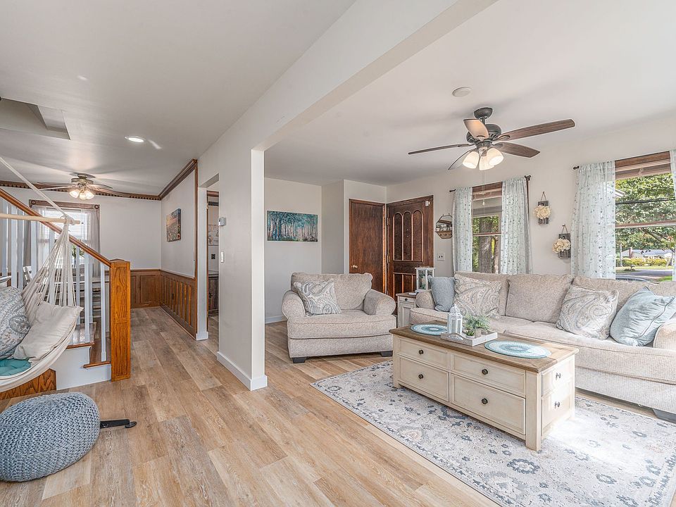 Welcome to 920 Bray Avenue in Laurel! This renovated Cape offers 3 bedrooms, 1.5 bathrooms, and a versatile layout with an updated eat in kitchen with newer appliances & coffee bar, living room, dining room, office with built-in shelves, den with cozy wood-burning fireplace with wood closet, and a powder room on the first floor. Upstairs are three bedrooms and a full bath. The basement provides over 600 sq ft that can be legally finished, plus a separate laundry/storage room. Features include fiber optic internet, a security system, a covered front porch, and a backyard with brick patio. A legal barn/workshop with electricity and water could have many uses and add unique value. Deeded beach rights, great neighborhood, and proximity to all the North Fork has to offer make this a move-in ready opportunity.