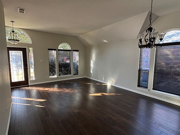 Welcome home! Beautiful one story home move in ready freshly painted in neutral colors and updates throughout. 3 bedroom with a flex room that can be a study or 4th bedroom. Spacious Primary bedroom and bath with dual shower heads dual sinks and bluetooth mirrors. Hardwood floors two dining and two living areas. Outdoors, enjoy a covered back porch overlooking yard ideal for relaxing or entertaining. Community amenities include a sparkling pool, neighborhood park and access to greenbelt