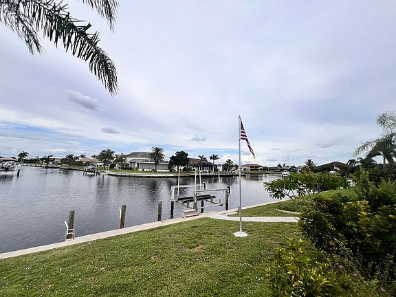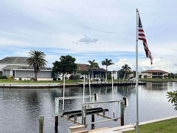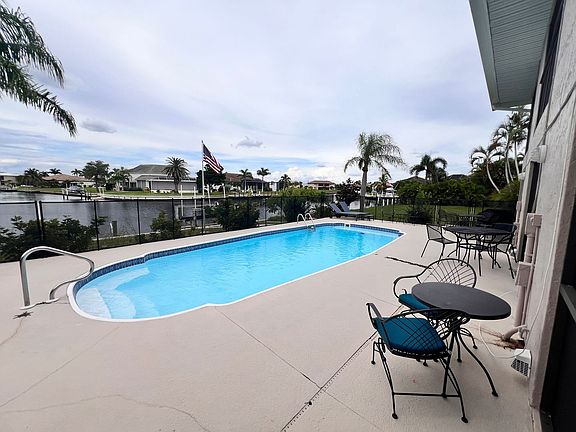 Nestled on a saltwater canal with a private dock, this light-filled home features luxury vinyl flooring, granite countertops, and picturesque views of the pool.