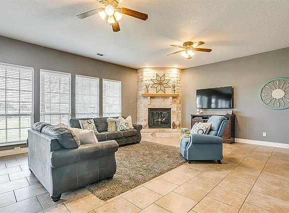 Get away from it all! This custom Austin stone home is located on 7+ acres. Enjoy your morning coffee while soaking up peaceful pasture views. This home has an ideal open concept floorplan and boasts 5 large bedrooms and 3 living areas. The chef's dream kitchen features granite counters, a butcherblock island, double ovens and an extra-large walk-in pantry. The Master suite has dual vanities with granite countertops and an expansive walk-in closet. Upstairs has two additional living areas perfect for relaxing, playing or studying. This country retreat offers deer, wild turkey, hiking along the seasonal creek, bass fishing in the finger of the adjoining lake, several camping sites, chicken coop and goat pens.